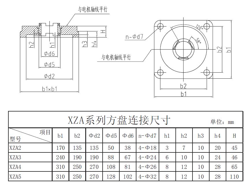 XZA系列方盤法蘭連接尺寸